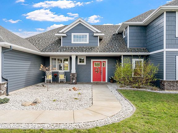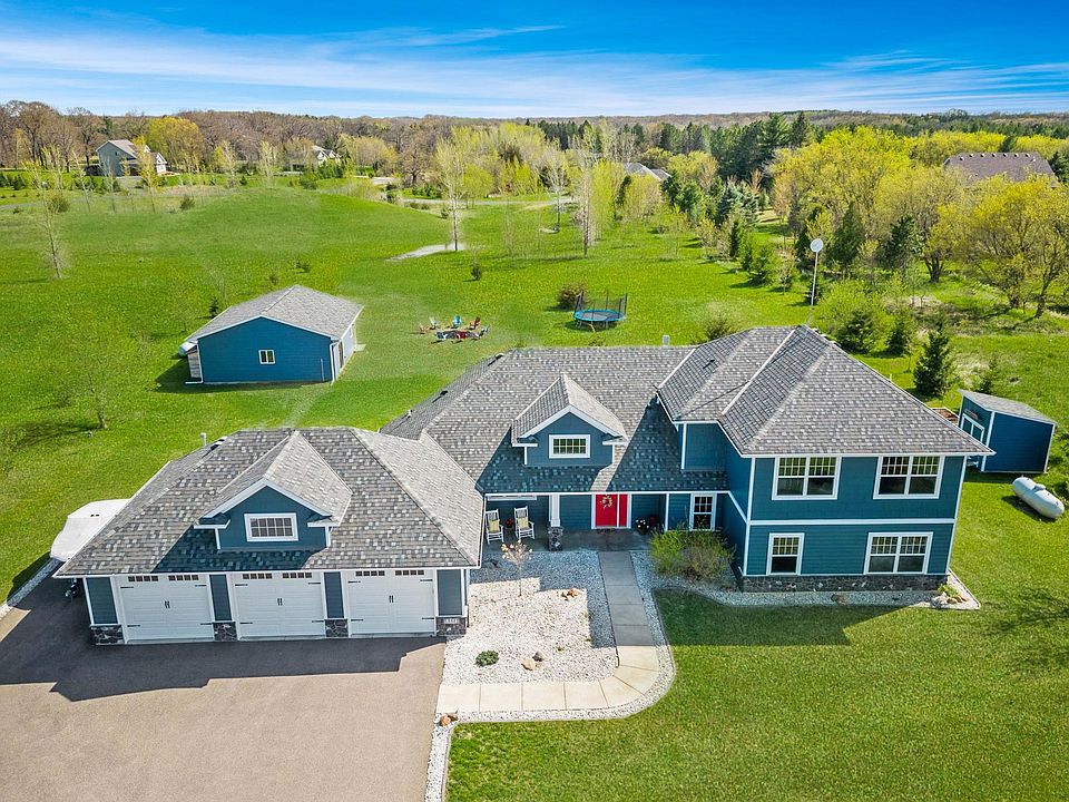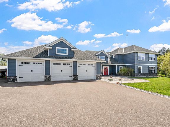 Beautiful, like new home on over 2.5 acres w/ access to Spider Lake! Open concept, main level living welcomes you w/ vaulted ceilings, stunning beams, fireplace w/ stone surround, custom built ins, in floor heat, luxury vinyl flooring & large windows offering an abundance of natural light & stunning views. Kitchen includes massive island, SS appliances, tile backsplash, quartz counter tops, farm sink & walk in pantry. Main level Owner's Suite w/ walk in closet & ensuite w/ gorgeous tiled walk in shower & dual vanity. 2nd bedroom, office & 3/4 bath on main along with huge mudroom & additional 1/2 bath. 2 beds up w/ loft area & full bath. Oversized attached 3 car garage w/ utility sink and ample attic storage PLUS brand new, amazing detached 28x32 garage finished for added living space- perfect for entertaining or having your own space to hang! Big patio, custom landscaping and new 8x10 garden shed!