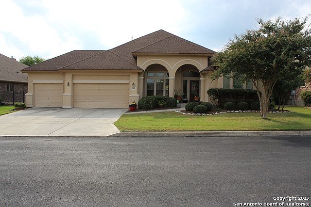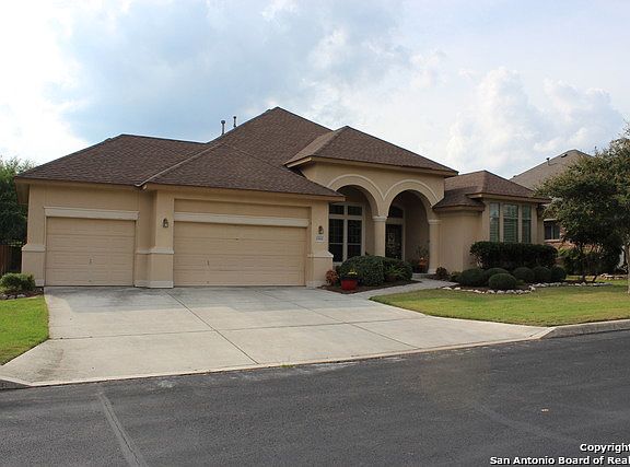 Beautiful single story home in the Park at French Creek. Generous open floor plan w/ 4 bedrooms, 2 1/2 baths, & 3 car garage. Inviting island kitchen w/ granite counter tops, breakfast bar, built in oven, gas cook top and walk in pantry. Master suite split for additional privacy - master bath has garden tub, separate shower & double vanity. Use 4th room as study. Attractive landscaping front/back, sprinkler system & covered patio. Easy access to 1604 near La Cantera/Rim shopping/entertainment. Come by today