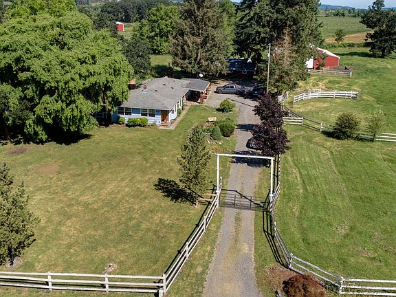 Country living at its best! Enjoy breathtaking sun rises & views! Gated entry to 1760 SF single level home w/lots of upgrades. 18.92 acres, fenced & cross fenced. 3600 SF barn w/2 horse stalls; 760 SF machine shed, garden shed, chicken coop. Home features updated windows; spacious kitchen w/tile floors, oak cabinetry & adjacent dining room w/bay window. Huge living room w/pellet stove, wood floors Master bdrm w/WIC. Covered patio.
