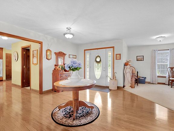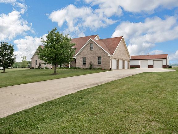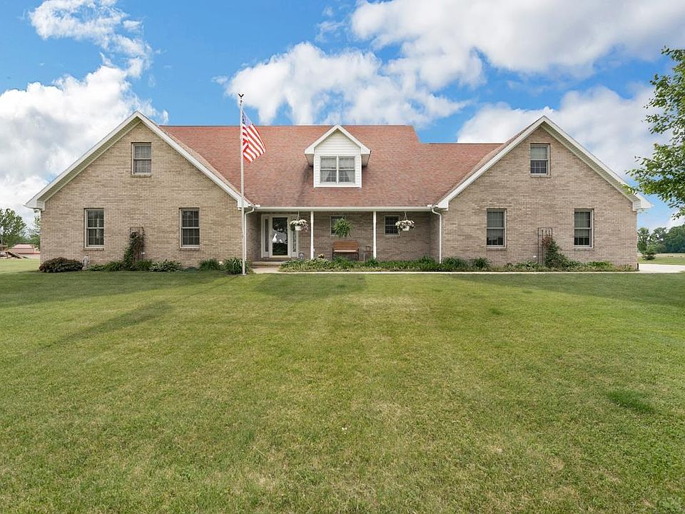This custom-built, all brick home presents 5 bedrooms, 4 full baths, over 4,300 square feet of living space located on 1.23 acres with a 3-car attached garage and an additional pole barn! Walk through the front door to a very inviting & open entryway with wood flooring that opens to the den and the spacious great room with eminent ceilings and tons of natural light! Kitchen is applianced with an island, walk-in pantry, and access to the formal dining that leads to the cozy, covered porch. Master suite is on the main with a walk-in closet and private bathroom. Rounding out the first floor is an additional bedroom, 2 full bathrooms, and a private laundry room. The second level boasts 3 more bedrooms and a very inviting loft area. The unfinished attic could be finished into anything an owner would want and has stationary stairs to the garage! Other features: Furnaces were new in ’19 & ’20, one AC unit is newer, water heater updated, plumbing manifold system.