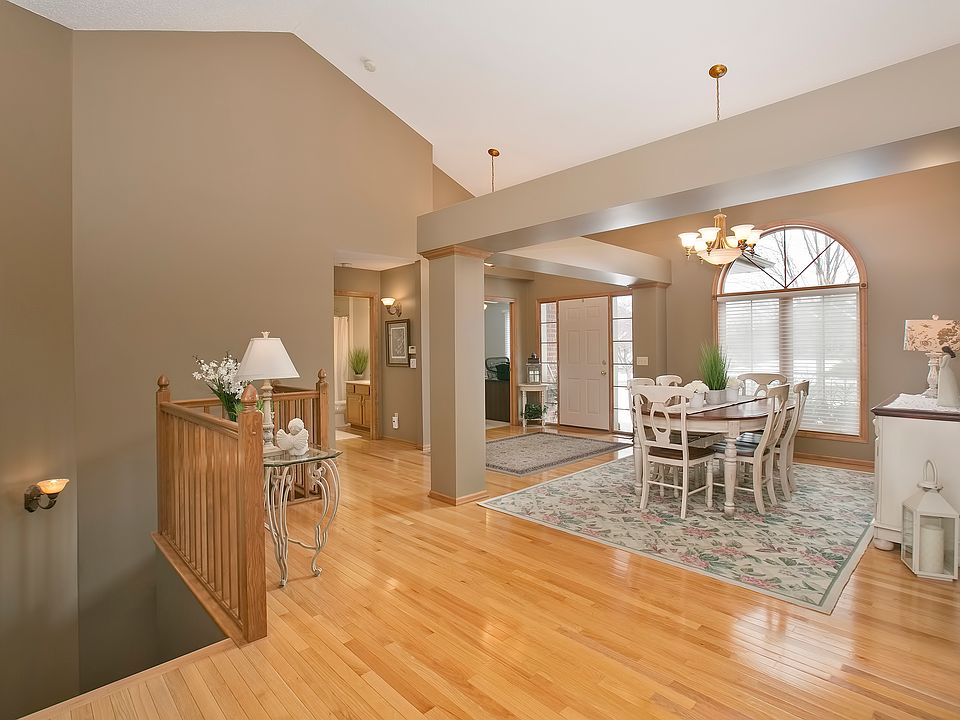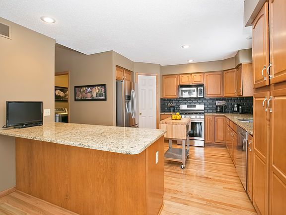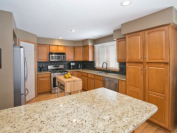 Impressive & pristine rambler home on a large & beautiful cul-de-sac lot! Mature trees provide nice privacy to enjoy a quiet night on the back deck or the beautiful stamped concrete patio from WO lower level. Inside there are gleaming hardwood floors that flow from the entry to the living room to the kitchen! The kitchen is amazing with warm-color-stained cabinets, granite countertops,designer backsplash & stainless steel appliances! Your favorite room in the home will be the 4-season porch!
