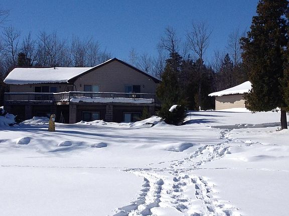 Meticulously kept and maintained! Nice, wide and open kitchen features Corian solid surface counter tops, stone backslash, pecan/hickory solid wood cabinets and stainless stove and refrigerator. The living room is open and has French doors to the 28' deck overlooking the fabulous crystal clear waters Lake Superior! The custom stone fireplace makes the entire space warm. Tongue and groove pine ceiling and hardwood flooring! Beautiful bathroom with separate shower and Jacuzzi tub, and you'll find the washer and dryer conveniently located here! The master bedroom overlooks the lake and has a very large walk in for her and a good size closet for him! The view is to the east and you'll love the sunrise each and every morning! Finished walkout basement holds the spacious family room with freestanding gas fireplace and French doors to the covered patio! The second bedroom is ready for your final touches and is also a walkout. The lawn is gently sloped to the lake. Second Sand Beach is protected from the big lake winds. While you'll still experience the November gale most days are calm and sunny! 340' of water frontage and you'll be kayaking, boating, and skiing! The boat launch is not far from here in historic Pequaming. There's also a small boat launch a 1/4 mile away! Outside you'll also find a heated 3-car detached garage (32x36) and a seller favorite 42x36 pole building addition! This workshop features 2-10' doors, 220 amp service and 30 amp outlets. The features and storage are endless here in this beautiful waterfront home and property. The 10 acres of land are wooded and ready for a select cut! Come take a look! The sellers are very interested in selling!