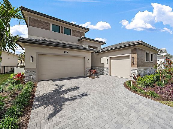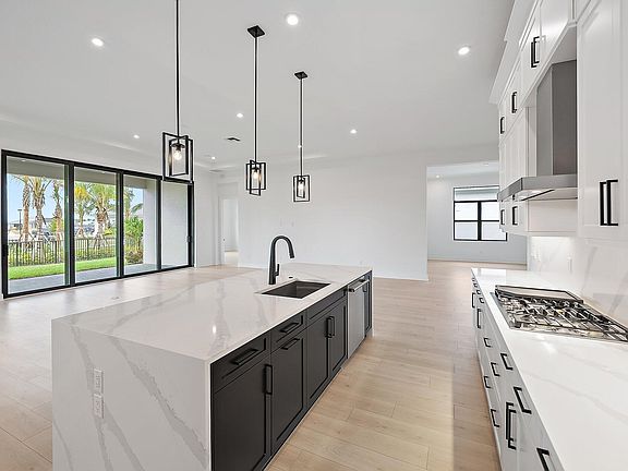 **New Construction** This brand-new Sydney floorplan, built by Kolter Homes, is located within the gated community of L'Ambiance at Avenir. This home offers 3 bedrooms and 4 1/2 bathrooms, including a second-floor bonus room and bathroom. The home also includes a 3-car garage, a 16' wide by 10' sliding impact glass door leading to the lanai, and an extended owner's bathroom shower. A wet bar has been added to the optional extended kitchen. The kitchen also includes a quartz island countertop with waterfall edges, a matching quartz backsplash and second tier upper cabinets. There is a gas connection for a future pool heater, as well as gas, electric and water connections for a future outdoor summer kitchen, and spray foam insulation. The backyard offers ample room to build a custom pool. L'Ambiance is located directly across from the soon to be completed Great Egret Clubhouse giving residents access to a full-service restaurant and poolside bar, 3 separate pools, fitness center, covered playgrounds, indoor and outdoor social spaces, sports courts and more.