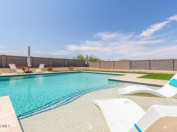 Your back yard oasis includes a huge, self-cleaning, Pebbletec pool, travertine deck, artificial turf, extended covered patio, travertine walkways, easy maintenance desert landscaping, RV parking, and elevated block fencing for extra privacy. The front yard includes a paver driveway to the RV gate, circular driveway, grand porch, paver walkways, and upgraded front door. Energy efficient home with solar panels, high efficiency 14 seer HVAC system, R-24 wall insulation system, foam & blown insulation, 2'x6' construction, and Low-E dual pane windows. Great location near Luke AFB and just minutes from schools, shopping, restaurants, Westgate Entertainment District, and the I-10/Loop 101 freeways. Must see!