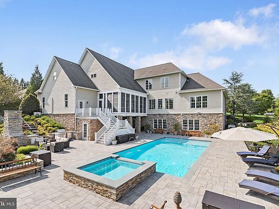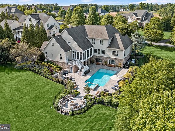 Fall in love with this absolutely exceptional five bedroom home in the highly sought-after community of Fox Meadow in West Friendship, built by Selfridge Builders set on a pristine 0.96 acre lot that backs to mature woods. Whether you are hosting parties or relaxing with loved ones, you will appreciate the blend of spacious entertaining areas, yet the cozy feel of home throughout. Thoughtfully and tastefully renovated both inside and out with excellent craftsmanship and spectacular attention to detail. A covered front porch greets you as you arrive and dual-entry doors lead you inside to the grand foyer with ornate millwork that continues through the home with crown molding, chair railing and wainscotting. Gleaming hardwood floors, a serene color theme and sun-filled windows. The formal dining room is large enough to accommodate any size gathering with sliding pocket doors and the front living room has a beautiful bay window and sliding glass pocket doors that create privacy. Let your senses come alive in the gourmet eat-in chef’s kitchen that was recently updated and is fully equipped with quartz countertops, 42” cabinets with lighting underneath, a walk-in pantry and premier stainless steel appliances including a quiet Bosch dishwasher, and Monogram double wall oven and a gas oven range with six burners. The adjacent breakfast nook is great for casual meals and opens to the family room with built-in shelving and a gas fireplace that provides warmth and ambiance. Kick your feet up and relax in the gorgeous great room with another gas fireplace. Off the kitchen, the mudroom features stacked washer and dryer and has access to the oversized three car garage with a ductless mini-split HVAC and additional storage space. Unwind in the screened-in porch overlooking the rear year, complete with a ductless mini-split HVAC for enjoying year-round. The main level showcases a fantastic primary bedroom suite with an accent tray ceiling, two walk-in closets with custom shelving and a luxurious bathroom with a jetted soaking tub, walk-in tile shower with bench, separate water closet, and two vanities. Two elegant staircases with iron balusters take you upstairs where you will find the den which is a great lounge space for the upper level bedrooms. A second bedroom suite upstairs is perfect for an additional primary bedroom suite with a sitting area, attached bathroom and walk-in closet. Another three bedrooms each with walk-in closets, three full bathrooms and a second laundry room with pull-down stairs to the attic, complete the upper level. Downstairs features and expansive recreation room with space for everyone’s activities with a wood stove and massive wet bar with granite counters. Working from home is ideal in the office, and the exercise room is great for getting in those morning workouts. Endless storage, a third laundry closet and a fabulous wine cellar finish the walk-out lower level. You will quickly become everyone’s favorite host with the most spectacular outdoor living areas made for entertaining with extensive hardscape and landscaping, underground lawn sprinklers, outdoor speakers, built-in grilling station, outdoor fireplace, and a heated in-ground saltwater pool with water fountains, color-changing lights, and hot tub surrounded by a paver stone patio. A convenient storage room outside is large enough to store pool floats and equipment. This superb lot is private, yet close to a wide variety of amenities that make this home the ultimate oasis. Energy-efficient three zoned heating and cooling inside, one mini-split in the garage and one mini-split in the screened porch and one of the HVAC units was just replaced in May 2023.