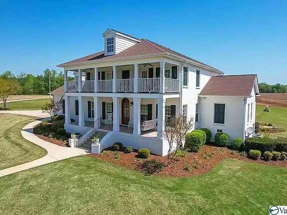 Southern living at its finest. Located in Brigadoon Subdivision just outside of Athens. Short drive to shopping & dining. 45 minutes to Redstone & Research Park. The Southern Charm of this home is a must see. From the balconies on the front that overlook the Tennessee River to the beautiful view of open fields to the screened porch that leads out to the salt water pool & guest house. Custom detailed molding throughout the home. Isolated Master Suite featuring a custom walk-in closet in the glamour bath. Upstairs features a media room & three bedrooms. Also has a custom designed, 1,000 sqft Pool/Guest house that can be used as an In-Law/ Parent home. Guest house is not included in the 4372 sq ft of the home.
