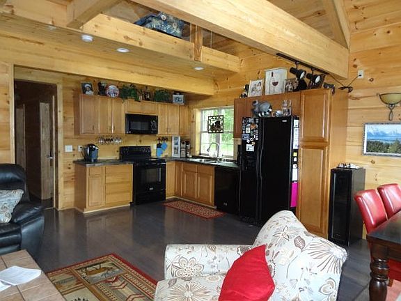 Mountain views from this 4 bdrm, 3 bath log siding home sitting on 15.95 wooded acres, 1/3+/- is cleared, approx. 2134 heated sq.ft. plus additional 425 sqft. Open floor plan that takes in the mountain views, bamboo hardwood floors in main living area, master bdrm with oversized walkin closet and walkin shower plus its own private deck, basement has a bdrm, walkin closet and full bath, family room plus rec room. 33 x 40 Barn, storage building with full bath, existing well. Abundant wildlife.