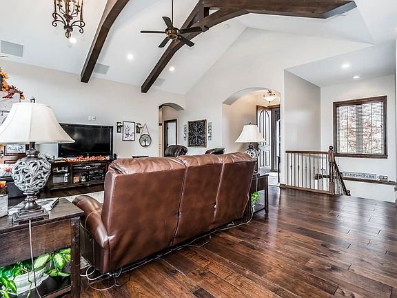 Incredible find in Hawthorne with in-ground pool and lush landscaping for a resort feel. This custom built ranch home features 5BR and 3BA with a stunning entry way with vaulted and beamed ceilings . The kitchen features all stainless steel appliances, gas range with vented exterior hood. Just behind the gourmet kitchen there is an expansive pantry area along with small desk. The back of the home features electric blinds for the large windows and a covered deck with gas hookup for your grill all overlooking the pool with a southern exposure!! The Master Suite features his and hers closets, double vanities and custom tile shower and separate tub!! Entertaining is simplified in this full walkout basement with a wetbar and large recreation space for anything you can imagine. There is an additional 2BR and 1BA downstairs, all with easy access to the pool. The pool has a new remote cover and liner and the roof is only one year old. This one is nice!!