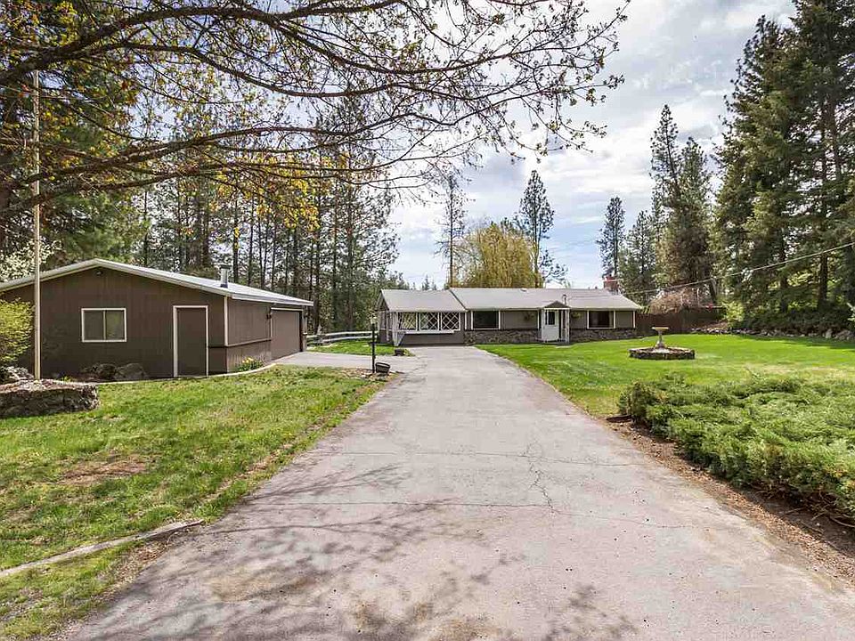 Incredible Oasis of privacy on over 9 acres. Custom Designed Rancher with Open Concept Living. Minutes to downtown Spokane. Detached 2 car car garage with a hobby shop attached. Well cared for 3 bed 2 bath 0 step entry home with attached sun room. The view from the back yard looks down on usable 9 acres. There is definitely room for RV parking or a shop. Only 1/8 mile from fishing and swimming. Call for a tour
