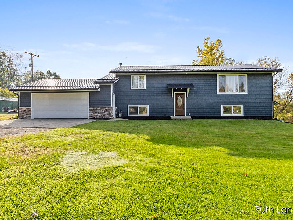 Welcome to your new sanctuary! This 4-bedroom bilevel home exudes charm and functionality. Features include an open living area with abundant natural light, a large kitchen, four comfortable bedrooms, and a serene backyard with a deck. The attached two-car garage adds convenience. Located in a tranquil neighborhood, this move-in-ready home offers both comfort and style. Newer siding, metal roof, exterior doors, stone work and deck! Don't miss the chance to make it your own - schedule a viewing today!