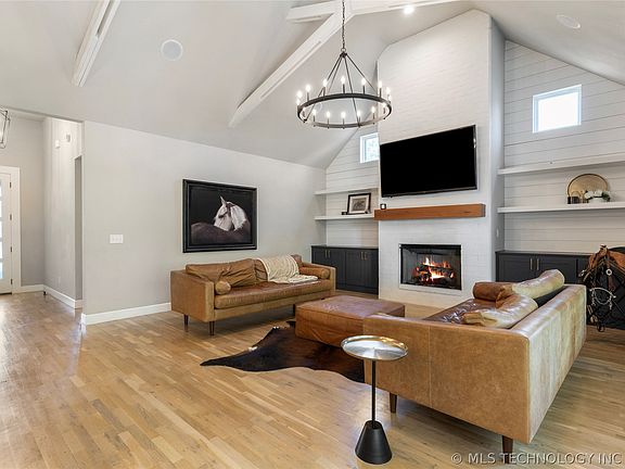 Welcome to this fabulous newer built home where modern living meets community charm. Step inside and be greeted by vaulted ceilings with custom beams and large windows allowing lots of natural light to flow in. This 4 bedroom, 4.5 bath residence has an open concept layout that flows seamlessly from the living room to the gourmet kitchen. Granite countertops and stainless steel appliances with built in fridge/freezer combo complete this space. Large primary suite has a private bath featuring trendy tiles, walk in shower, soaker tub and his/her vanities. Laundry conveniently located off primary closet. Office, second bed with ensuite on main floor and a drop zone. 2 bedrooms, full bath + oversized game room up. Step outside to your private oasis covered in mature trees perfect for entertaining or simply unwinding by the fireplace. Sprinkler System. Surround Sound System. Neighborhood Pool & Playground. Bixby West Schools