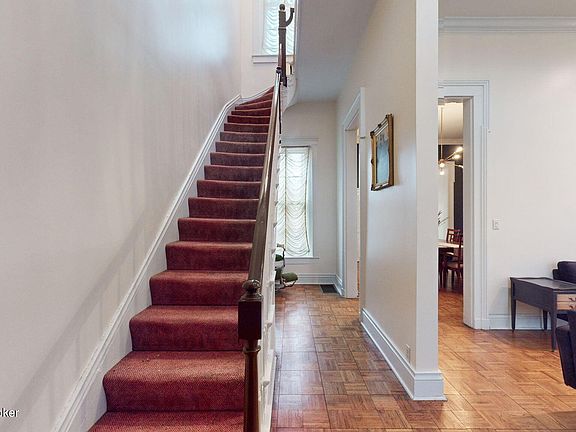 Welcome to this gorgeous circa 1885 Federal styled solid brick home overlooking Olmstead's Central Park in heart of Old Louisville offering over 4000 Sq. Ft. which is priced to sell at just under $125 per Sq. Ft. One won't find a better value in the neighborhood. This home was originally built as a duplex for two sisters however, the home was opened up to a single-family residence in the 1960's and has been lovingly restored throughout. One could easily convert back to a duplex. You will be amazed by the interior which has an entry foyer that opens to a dramatic 2 story formal living room. Original parquet and oak flooring on the 1st floor, 8 cast iron fireplaces (2 with working gas coal baskets). The 1st floor also has a formal dining room, an axillary living room/den, a home office, a spacious BR, a small BR a full bath, laundry room and 1/2 bath. The modern stylish eat-in kitchen with custom European styled cabinetry that has pull out drawers has recently been updated with new Quartz countertops, a subway tile backsplash, granite composite sink, tile flooring and updated stainless appliances. There is a spiral staircase from the kitchen that leads up to the 2nd floor. Up the front staircase to the 2nd floor where you will find a sitting area overlooking the park. This entire floor is adorned with Brazilian Cherry Hardwood flooring. On this floor you will find 3 BR's, a full bath w/separate tub/shower & large closet. There is an incredible custom-built library on this floor as well. The current owners use the rear 2nd floor as their primary bedroom which opens to the 2nd floor covered deck overlooking the rear yard. There is a huge walk-in closet in the front primary bedroom that overlooks the Park. There are dual HVAC systems and water heaters (one set for each side). There is a full privacy fenced yard with concrete pad for plenty of off-street parking. Central Park offers tennis courts, children's play ground (splash pad coming this summer), an outdoor amphitheater (Shakespeare performances, free concerts, etc.) the neighborhood welcome center and the 6th district police substation. Old Louisville offers numerous dining experiences including 610 Magnolia, Bucks Restaurant, North Lime Donuts and the Brewery along with small mom & pop shops and tons of history. Close to downtown tourist and business district, University of Louisville, Youth & Performing Arts School, Dupont Manual High School & Noe Middle School. The home offers dual HVAC systems and water heaters. Average LG&E runs around $350/mo. and Louisville Water is approximately $75-80/mo.