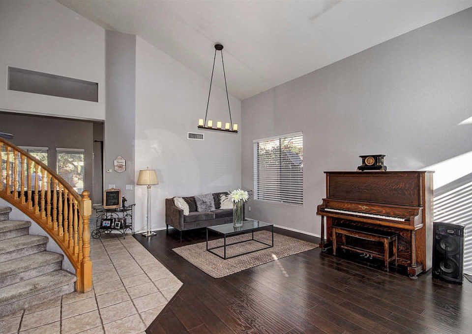 Absolutely gorgeous home in Chandler! Soaring ceilings and neutral flooring throughout. Great room has cozy stacked stone fireplace and media niche. Kitchen is complete with center island, breakfast bar, a plethora of custom cabinets, and stainless steel appliances. Master suite downstairs has wood flooring with ceiling fan and private exit to backyard. Upgraded 3/4 bathroom with double sink vanity and walk in shower. Spacious walk in closet! GO upstairs to a large loft, a junior master suite, along with 2 other bedrooms and a bathroom. Oversized backyard features a covered patio with pebble tech sparkling pool, lush green grass, and plenty of room for entertaining.
