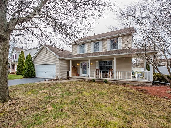 Welcome home to 1362 Flynn Rd - BEAUTIFUL colonial in Greece! This well maintained home has 3 bedrooms, 1.5 baths - newly remodeled powder room. Cozy up to the fire in the vaulted family room right off the kitchen. New countertops in kitchen and ample cabinetry... ALL APPLIANCES REMAIN! Step out to the backyard from the dinette. Formal living room and dining room allow for additional entertaining and gathering space - could easily be used a flex space for home office. Spacious primary bedroom with door to main bath. Additional 2 rooms are generous in size. Updates include ALL new stainless steel appliances 2019, remodeled powder room, updated light fixtures, freshly painted through out. Invisible fence for your pup! NEW FURNACE & CENTRAL AIR 2019 with 15 year warranty! Roof approx. 10 years old. 2 car garage! Open house Saturday 1pm-3pm and Sunday 10am-11:30 pm. Delayed showings until 3/30. DELAYED NEGOTIATIONS SUNDAY APRIL 2ND AT 1pm.