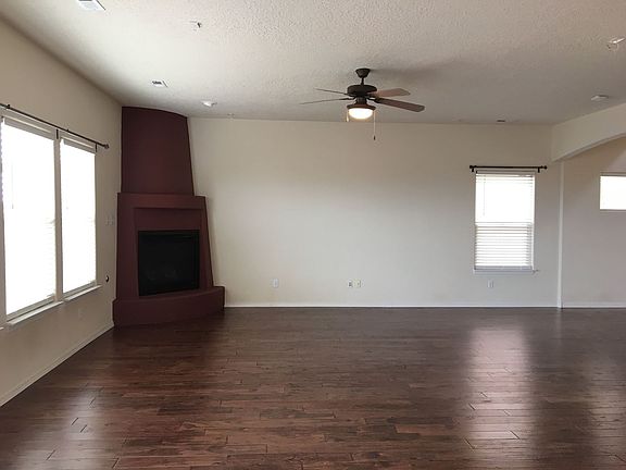 Spacious 4BR - Mountain View - Landscaped front and back yard. Great curb appeal, custom front entry doors. 2 Story, all bedrooms upstairs. Large open floor plan, all wood floors on 1st level. Living area w/kiva style gas log fireplace and ceiling fan. Dining room open to kitchen w/breakfast bar. All appliances stainless steel, refrigerator, gas cook top stove, microwave, dishwasher, disposal, large pantry and great counter space. Laundry room w/storage cabinets, washer and dryer. Guest powder room, ceiling fans, window blinds, hardwood flooring downstairs, carpet/tile flooring upstairs. Upstairs 3 spacious spare bedrooms, full hall bathroom, hall linen closet. Spacious master suite, double vanity, garden tub, separate walk-in shower. 2 Car garage/remotes, custom side rod iron gate, back yard concrete patio, artificial turf, fully fenced, mountain views. Alarm available at tenant expense. Refrigerated AC. DIRECTIONS: 528 to Sara East Sara Left on Stephanie Right on Eileen Left on Desert Ridge Right on Mountain Vista Dr (RLNE2510574)
