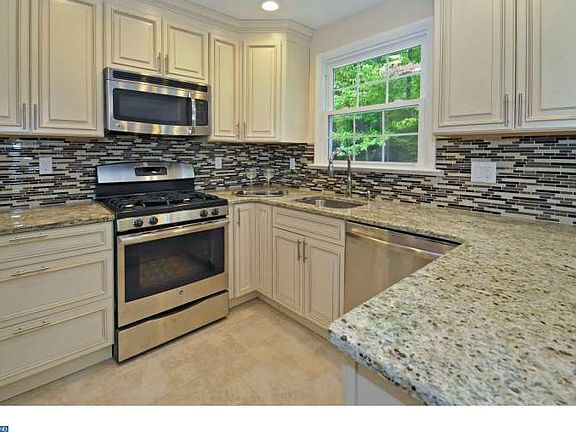 Totally renovated from roof(30 yr) to patio (pavers) and everything in between. Refinished hardwood floors throughout. Family rm, laundry, kitchen and baths all ceramic tile. Living room with high hat lighting, and 5 panel bay window with deep sill. Open dining room overlooking the spacious back yard with back drop of wooded area. The kitchen with creamy antique like European self closing cabinets. Glass/tile back-splash, granite counter and breakfast bar, and SS gas stove, microwave, dishwasher, and French style refrigerator. Lower level has ceramic tile floor (wood-look) into the powder room with pedestal sink, and laundry room as well. Easy access to the one car garage with new door. Upper level has a Italien style ceramic tile hall bath with rich cherry vanity. Master bedroom will accommodate full set of king size furniture, has ceramic tile powder room and walk in closets. 2 additional bedroom with generous closets. New windows, and raised panel doors throughout, new heater and AC. Beautiful front door with daylight of leaded glass at top. Nothing is left to the imagination, except how you will enjoy decorating it to make it home.