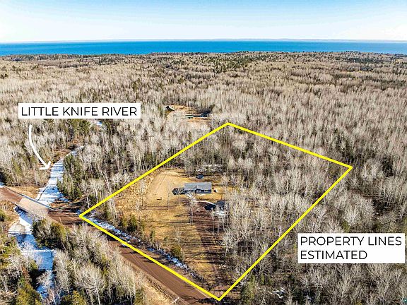 Gateway to the North Shore & Situated Ideally Between Duluth & Two Harbors! This Beautiful 3 Bedroom, 2 bath Ranch Home is Accommodated with a Newer (2021) Detached Garage that is Insulated & Heated! You Will Notice the Quiet Location Nestled Comfortably on 5 Wooded Acres & Only a Stone's Throw to the Babbling Little Knife River! Appreciate the Open Concept Floor Plan Featuring a Bright & Spacious/Vaulted Living Room w/Wood Burning Stove, Recently Updated Kitchen Cabinets & Peninsula w/Bar Including Stainless Steel Appliances & Dining Room With Access to Large Rear Deck While Overlooking The Private Back Yard! Also Enjoy The Bright & Cheerful Master Bedroom Accompanied w/an Elegant Master Bath w/Tiled Walk-In Shower & Additional Family Room Living Space! Note: The Second Full Bathroom w/Tiled Tub/Shower Surround is Conveniently Placed Near the 2nd & 3rd Bedrooms & Family Room! IMPORTANT UPDATES: Propane Furnace Installed in 2021 & New Hearty Backer Siding & Roofing Installed on Home 8 to 10 Years Ago (respectively).