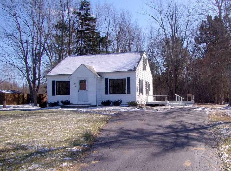 LOVELY 2 ACRE "COUNTRY SETTING ON WOODED LOT". Enjoy turkey, deer, other wild life & a quiet setting. Original interior-one owner, solid residence, ready for new buyer's decorating touches. Set back from the road, close to bike path to Beaver Island State Park, Town Center shopping & thruway. "Tudor" peaked front cape. Large living room, eat-in kitchen & 1st floor bedroom and bath. 2 bedrooms/storage upstairs. Rear wood deck overlooks mature trees. Plenty of room for a future pool, play items or shed. USDA funding possible, special bank programs available. Room to add a garage or storage barn. Perfect for 1st time buyers. Updated furnace, Circuit breakers, 220 line, septic replaced 1991 & pump. Low taxes & water bills. Desirable Road featuring mature trees. Easy appointments.
