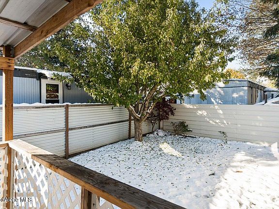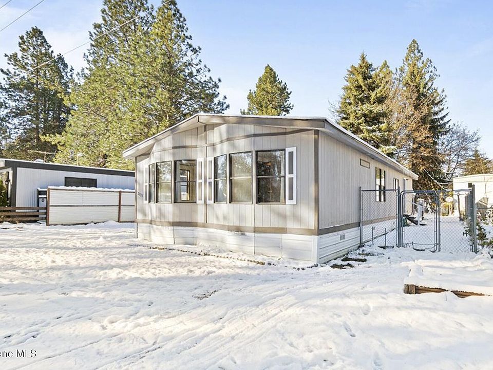 Spacious double-wide facing the Spokane River. 3 bedroom, 2 bathroom and 1344sf. All the appliance stay. Newer carpet and vinyl flooring. More updates needed, but perfect to move in and take your time to make it your own. Partially fenced yard, garden shed and your own apple tree. This is on leased land with a monthly lot rent at $595. Can be used as rental income!