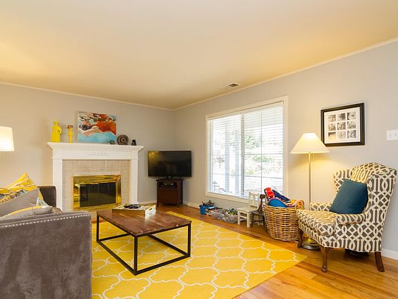 Please note $100,000 price reduction. Charming bungalow with darling front brick porch just waiting for your family! Approximately 1300 square feet of living space with 3 spacious bedrooms and 2 baths. Lovely living room with wood burning fireplace and large front window overlooking the front yard. Separate dining area off of kitchen. Hardwood floors throughout living area; tile in bathrooms and kitchen. Backyard has patio for entertaining and separate storage shed.