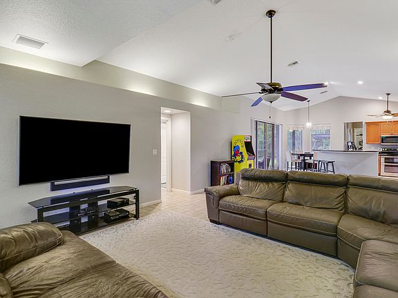 No HOA -Custom-built 2005 home on secluded 1.31 acres with a pond. Features 4 beds, 2.5 baths, 2-car garage, formal dining, and an office/den. Boasts a new Tempstar Gold AC (2021) with UV filter, fresh exterior paint, Nest Thermostat, and hurricane panels. Enjoy a screened porch, room for a pool, and lush landscaping with exotic fruit trees and a fire pit. Roof updated in 2022. Minutes from downtown, easy SR 7 access. The house also features a charging station for Electric Vehicles.