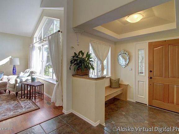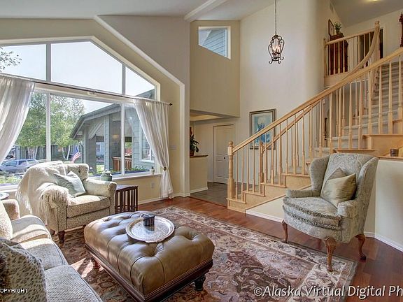 Beautifully built & maintained this custom Hagmier home sits on a knoll offering seasonal views of Cook Inlet, Fire Island & the Alaska Range! Featuring a Rizzo designed kitchen w/maple cabinets, gorgeous granite counters & backsplash. Well appointed thru-out w/tile & Brazilian cherry hardwood floors. West facing fenced back yard w/expanded deck & patio area for the firepit & lovely landscaping.
