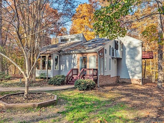 Rare opportunity to own a 5 ACRE parcel in the James River H.S. District. Not your cookie cutter house! Located near Robious Landing Park and Bettie Weaver Elementary School, this Unique property offers two first floor bedrooms with a full hall bath, and private large Master Suite upstairs with its own fireplace and balcony overlooking a parklike view. The first floor features beautifully refinished hardwood floors, beautiful tongue-in-groove knotty pine walls, soaring vaulted ceilings, and lots of light flooding through numerous windows. Sit in your spacious kitchen with stainless steel appliances and 18' ceilings and enjoy the meditative views. Outdoor amenities include new multi-tiered decking and fenced yard with extensive mature landscaping includes dogwoods, azaleas, and crepe myrtles. There is also a detached oversize 2+ car garage with exterior stairs leading to a large office/studio/home business above with its own separate utilities. The garage also features an added equipment storage room. Priced below assessed value. This Private Retreat offers a one of a kind property conveniently located near shopping and restaurants.