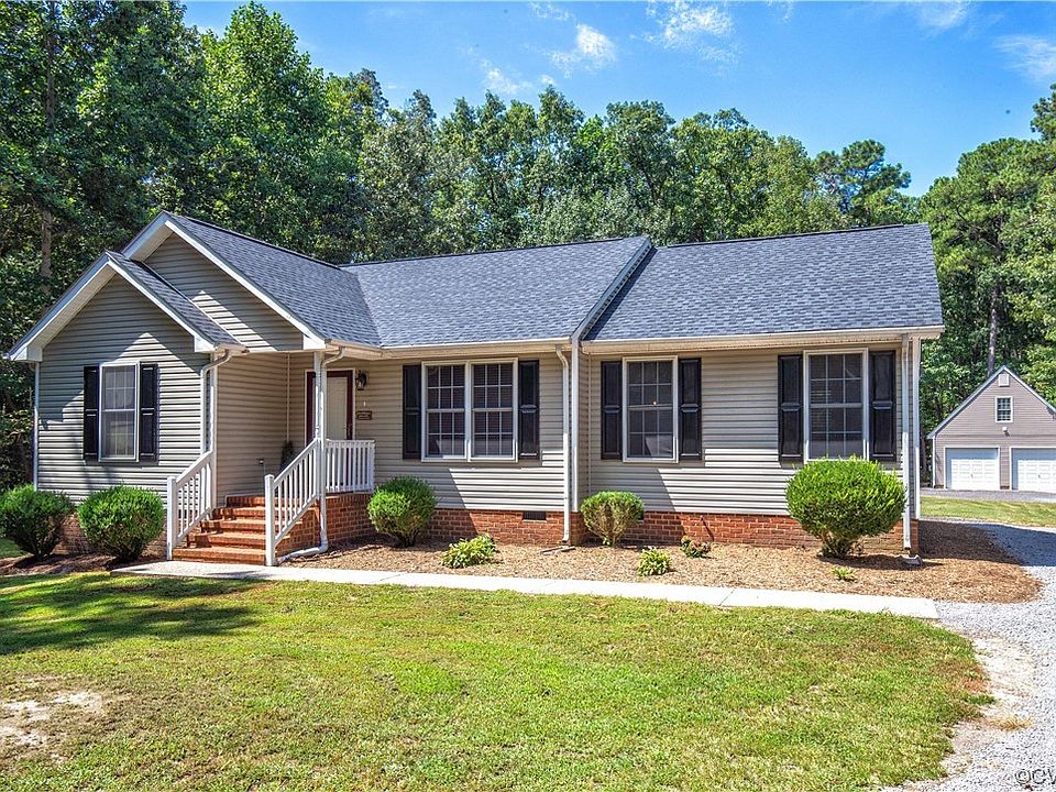 A Gardeners Dream!! Apon arrival the first thing you will notice is the 5 acres this home sits on is very private. It offers 3 large greenhouses perfect for all your gardening/farming needs or desires. One of the greenhouses has an attached heat pump for growing year round, 2 have concrete floors, as well as plenty of concrete walking bath between. The outdoor shed area has its own 200amp service panel to supply extra power for the heat pump and walk-in industrial refrigerator housed in the shed. The detached 2 car garage has epoxy floors and a finished room above perfect for a man cave or guest room. The home has had many recent major upgrades to include new roof, new heat pump, new well pump and pressure tank. The kitchen features white cabinetry, laminate floor, laminate counter tops, and farmhouse style trim. The living room has a vaulted ceiling, laminate floors, and farmhouse trim added. The primary bedroom features an en-suite bath with tile flooring, tub/shower with tile surround as well as new vanity. The other 2 bedrooms have carpet flooring and share a hall bath with tub/shower combo. Schedule your showing today!