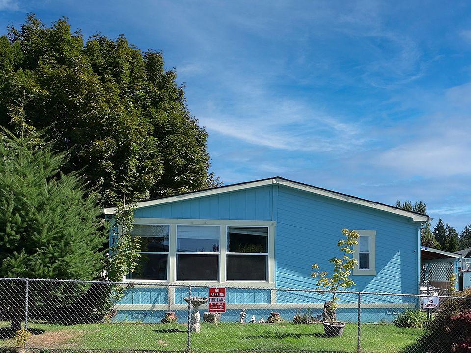 3 bed 2 bath home, 1620 SQ ft. Features open kitchen adjoining the sunroom/family room, dining area, large living room with vaulted ceilings and wood burning stove. The Primary bedroom has a jetted tub, step in shower. 2 more bedrooms and a utility room with washer & dyer. Attached covered carport currently being used for storage and 1 car space, but could easily be turned back into a 2 car carport. Fully fenced front and back yards with a small deck. Roof replaced in 2018, furnace is about 5 years old and a newer hot water heater.This home is just in need of some cosmetic updating, it is a solid home just waiting for you to make it your own.Park Space Rent is $1276 per month- Covers Management, water and sewer.