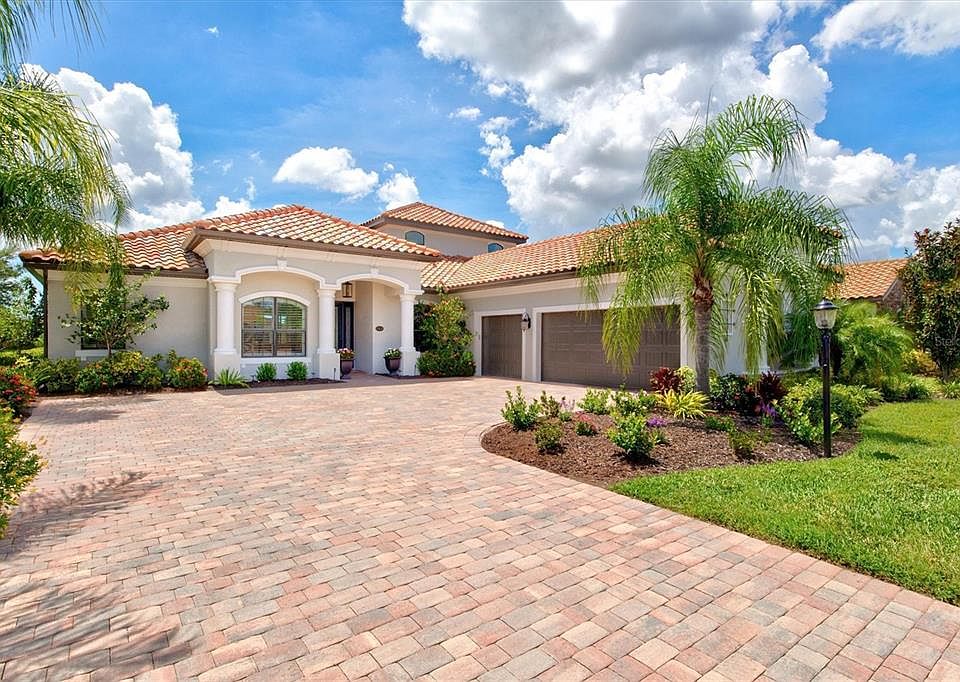 Welcome to Bridgewater! This beautifully maintained home offers over 3,100 sqft of living space and is located in the highly sought after, maintenance-free and gated community of Bridgewater at Lakewood Ranch. The brick paver driveway, colorful landscaping, and freshly painted exterior create the perfect curb appeal. As you enter through the front door you will be delighted by the interior which has been recently painted in cool-neutral tones and features an open concept great room, crown molding, and tray ceilings. The kitchen offers a breakfast bar, granite countertops, raised panel cabinetry, stainless steel appliances, including a built-in oven and microwave, and a gas cooktop. This Cambridge Grande model has a split-bedroom floor plan, with a spacious owner's suite that provides total seclusion from the other bedrooms. The owner's suite has an upgraded closet with custom shelving, as well as his and her vanities, a large walk in shower, soaking tub, and private access to the lanai. A separate office located off the entryway is perfect for those working from home. This room has an abundance of natural light and has been upgraded with plantation shutters. The bonus room is located upstairs and is equipped with all you need to host family and friends. Outside you have the ultimate setting for enjoying the highly coveted Florida lifestyle, including a stunning water-view. The Saltwater Pool & Spa was designed and built by Waterscapes and includes a sun shelf, water features, and color changing lights. The pool pump and salt cell system were both replaced within the last year, and a hurricane grade, motorized smart screen has been added to the lanai as well. This home has an oversized 3-car garage with plenty of storage space for all of your vehicles and toys. Bridgewater is located just minutes to shopping, dining, Lakewood Ranch Main Street, I-75 and the area's top rated schools. The newest K-12 charter school, Lakewood Ranch Preparatory Academy is located just 1/2 a mile from Bridgewater! Room Feature: Linen Closet In Bath (Primary Bedroom).