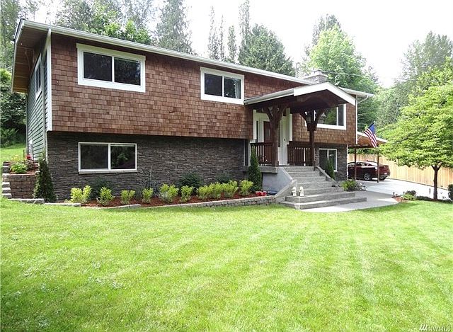 Gorgeous updated home on a huge half acre lot in the Issaquah School District. Enjoy a beautifuland roomy owners suite with a custom walk-in closet and en-suite bath with a huge tile shower. 3 bedrooms, 3 full baths, and den/office space for plenty of space to spread out. Recently updated kitchen with new beautiful wood grain tile, huge skylights, and large eating bar. Backyard upgradedwith a new expansive compositedeck, brand new hot-tub, sitting patio, rock wall, sport court, and garden space. Home features an efficient heat pump for both cooling and heating year round. Just 6 miles to great shopping in Issaquah, or 7 miles to the Landing. Short commute to Bellevue or Seattle. Be a part of the coveted Issaquah school district.