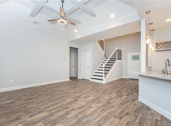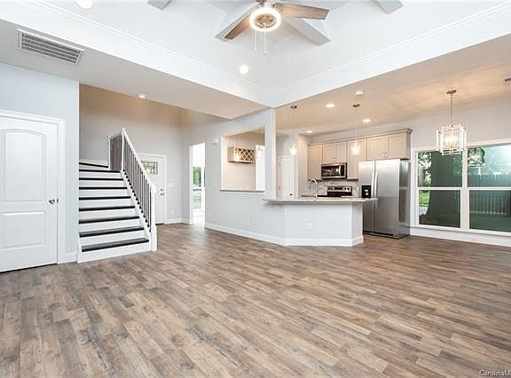 This custom new build is located in the desirable Matthews community. Situated on almost a half acre, this beauty has all the finishes and room you'll want. The kitchen boast granite countertops, custom backsplash and SS appliances. The master suite is located on the main level along with a mud room, dining room/optional office, and a gorgeous 2 story great room with 15' coffered ceilings and a custom fireplace. On the 2nd level you'll find 2 additional bedrooms, a bonus or 3rd bedroom, and a loft, along with 2 full baths. The builder spared no expense in upgrades, including extensive molding, rod-iron railing, and spa-like bathrooms. The backyard is flat, spacious, private, and will be perfect for entertaining! Amazing location, close to I485, shopping and dining!