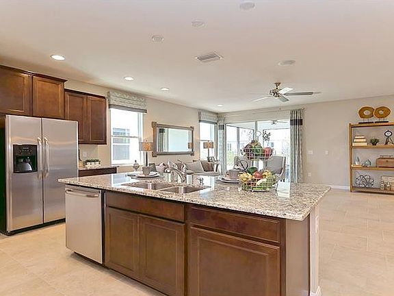 NEW HOME UNDER CONSTRUCTION - This home is modernly designed to feel open and spacious while still providing five bedrooms and three bathrooms in a one-story floor plan. The Owner's Suite is located at the back of the home for privacy and features an en suite bathroom with double vanity, walk-in closet, and shower. Bedrooms two and three are on the same side of the home and share the second bathroom, while bedrooms four and five are located at the front of the home on the opposite side and share the third bathroom. The kitchen is at the center of the home and overlooks both the dining room and living area. It features a center island, corner pantry, and plenty of cabinet and counter space. A covered lanai at the back of the home provides the perfect spot to enjoy the Floridian outdoors or dine al fresco.