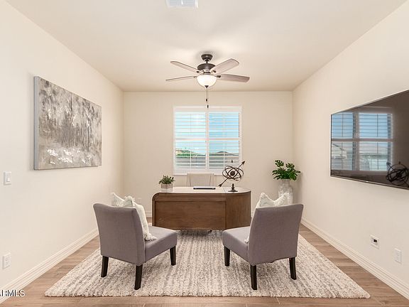 Amazing tile wood look floors, plantation shutters throughout, and den make this home look and feel one of a kind. Oversized great room floor plan & large master bedroom. Stunning chef's kitchen features marble counters, grey cabinets with crown molding, SS Bosch appliances, walk in pantry, and an oversized island with breakfast bar. Dining area includes upgraded lighting and is centrally located making it ideal for entertaining. Garage cabinets & epoxy flooring with whole home water filtration and water softener installed. Close to Wigwam Resort & freeways.