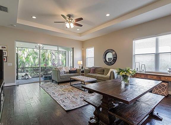 This move-in ready single family home is located in Manchester Square, a beautiful gated community in the heart of Naples with low HOA fees. This adorable home features hard wood floors throughout and upgraded carpet in the bedrooms. Fully upgraded kitchen and bathrooms, with custom lighting and mirrors. The master suite features a large walk in closet with custom cabinets. Landscape has been redone and well maintained. This home shows like new and won't last long!