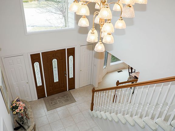 Stately and spacious 4 bedroom colonial located on a private cul-de-sac. Walk in to a 2 story foyer leading to a den with French doors, formal dining room with butler's pantry, great room with gas fireplace and impressive surround, and soaring ceilings. Nice open kitchen with granite counters, appliances, tile flooring and large breakfast nook. Huge master suite featuring walk in closet, master bath with jetted tub, stall shower and dual sinks. Walk in closets in bedroom #2 & #3. Ceramic family bathroom. 3 car side entry garage, basement plumbed for bath. Newer roof, central air and hot water heater. Don't miss this one!