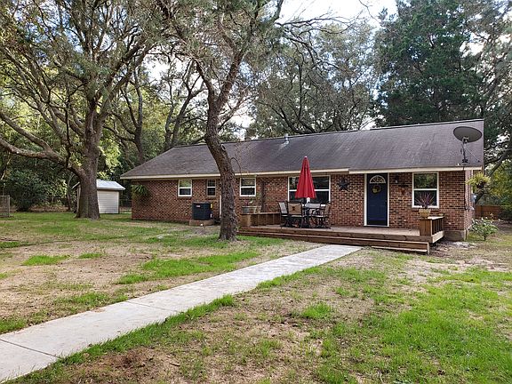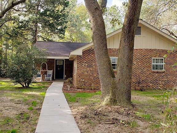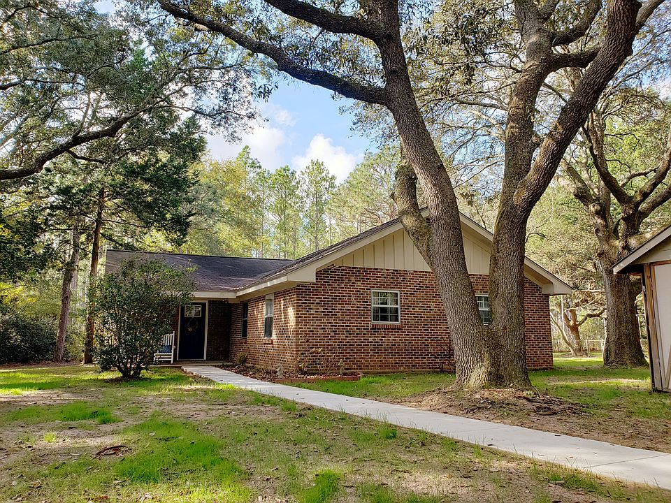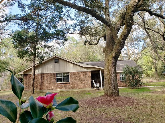 Are looking for a country home that offers acreage, privacy and peacefulness, yet you want the convenience of being only a few minutes from town? If so, then this is the perfect home for you! This rustic farm house style home offers 4 bedrooms, 1.5 bathrooms, living room, family room, mudroom, office, laundry room, and separate dining. This brick, single story home is nestled in a park-like setting with 4 wooded acres, numerous beautiful live oaks, magnolia trees, blueberry bushes, and flowering trees galore. This is not a cookie cutter, builder grade home- it is unique and one of a kind! At this home you will not find a small yard, a lack of privacy, or HOA rules and restrictions. If you've always wanted to start a mini farm, now is your chance because there is a chicken coup and animal pen already in place. If farming is not your thing, you can just relax in the hammock under the palm trees, or set out and enjoy a camp fire. The property has roughly ¾ an acre fenced in around the house for your furry friends to roam, or your kids to play. Bring your tractor, four wheeler, and all of your toys because at the back of the property sets a newer 30' x 24' metal shop with 10' roll up door and air conditioning with its own 200 amp electrical service. There's also a barn with additional 4 parking spaces, so you'll never be out of room to store all of your toys. Listed below are just a few of the great features that this home has to offer: -New Hickory kitchen cabinets, subway tile backsplash, and stainless steel appliances -Completely renovated bathrooms with new porcelain tile flooring -New Green Guard Certified luxury vinyl plank flooring throughout -New light fixtures and ceiling fans throughout -New solid wood 6 panel interior doors -Custom built sliding barn doors in bedrooms and living room -New central air conditioning unit -Fresh paint throughout-Cedar lined closets in hallway