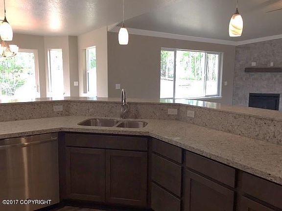 Our most popular floor plan, it has a split bedroom floor plan and is a perfect size. This model will have a fireplace in the living room with a mantle and stacked stone to the ceiling. The kitchen has stainless appliances, granite counter tops, pendant lights about the island, staggered cabinets, stainless faucet and undermount sink. Master bedroom has vaulted ceilings, a ceiling fan, and private bathroom. The bathroom features corner soaker tub, separate tiled shower, water room, and double sinks