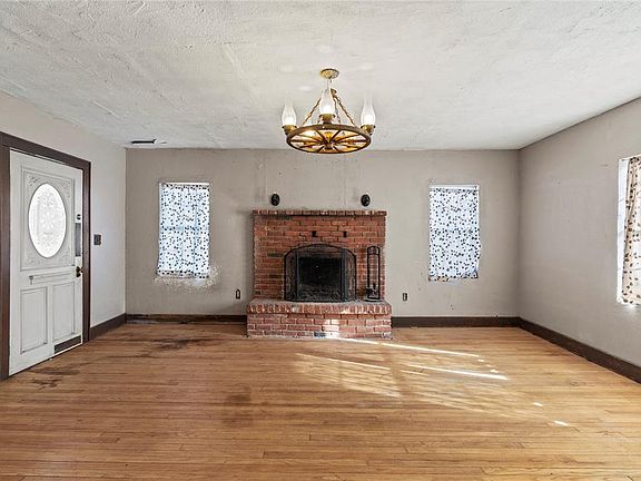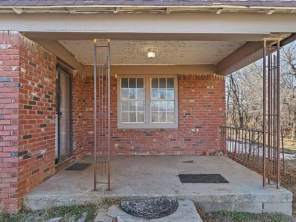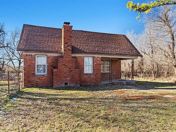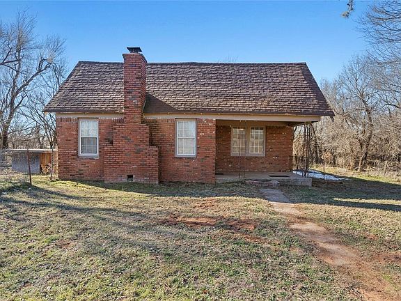 This charming rural property in Guthrie, Oklahoma, is a fixer-upper's DREAM. This spacious three-bedroom, one-bathroom home is nestled on 5 acres of scenic land. The home includes a bonus room, an enclosed porch, and a warm living area featuring a brick fireplace, creating an inviting atmosphere.