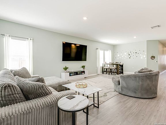 Don't miss this beautiful Lennar-built home in the highly desired Mission Del Lago golf course community! This spacious 4-bedroom, 3-bath home features an open-concept layout with a large living area, modern island kitchen, and abundant natural light throughout. The primary suite offers a relaxing retreat with a double vanity, walk in shower, and walk-in closet. Enjoy energy-efficient living with solar panels already installed - buyers have the option to assume the existing solar loan and immediately start saving on electricity costs. Step outside to a covered patio and fenced backyard, perfect for entertaining or unwinding. Neighborhood amenities include a pool, golf course, clubhouse, park, and walking trails. Conveniently located near I-37, Loop 410, and TX-281, providing easy access to downtown San Antonio, shopping, and dining. Don't miss this solar-powered opportunity!