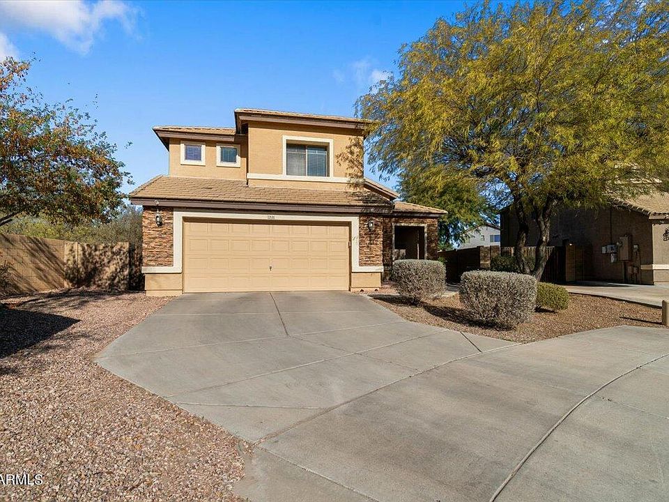 Best location in DREAMING SUMMIT. Sitting at the end of a cul-de-sac with no neighbor on one side and a neighborhood park 100 yards away. Spacious floorplan features 4 bedrooms plus a loft, 3 full baths, formal living and dining room, large eat-in-kitchen with island and a wonderful family room. Beautiful tile on entire first floor and in all bathrooms. Brand new carpet just installed in the rest of the home. Primary bedroom has large walk-in closet. New ac/heaters installed in 2022/2023. Exterior painted a few years ago. Ceiling fans in all rooms. Wonderful backyard with pavered patio and fenced pebble play pool with water feature. Located close to Luke AFB, Sniders, Amazon and many other employers. Dreaming Summit Elementary School is in the community. Extended Garage is 22 feet deep.