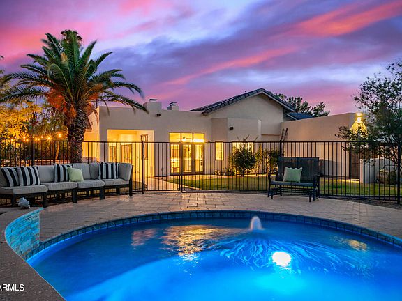 Welcome to your dream oasis in Scottsdale! This exquisite 5-bedroom, 4.5-bathroom home offers a luxurious sophisticated living experience that truly stands apart. Spanning 4,934 square feet on an expansive 1-acre lot, this residence boasts unparalleled upgrades amenities that cater to your every need. Every inch of this home is either new construction or thoughtfully remodeled, from the cabinetry and countertops to the new roof, flooring, plumbing & electrical fixtures. The result is a harmonious blend of elegance & functionality w/ seamless blend of natural materials & modern design. The heart of this home is the entertainer's kitchen, boasting not one, but two islands with stunning black granite and white marble counters. Bosch appliances, double dish drawers, an induction cooktop & R/O . Step inside and revel in both luxury and efficiency with Velux windows & solar tubes flood the home with natural light. Wholly owned solar keeps electricity bill under $200. Relax in the lavish primary suite, featuring a separate office/gym space, a spacious walk-in closet. The primary bath is a spa-like retreat, showcasing an imported Microsilk nano bubble bathtub, a Toto Neorest toilet with integrated bidet, and a luxurious zero-entry shower with multiple heads. An attached guest wing/casita provides versatile living options, offering two large bedrooms with ensuite luxury bathrooms and zero-entry showers. This space is perfect for multigenerational living, guests, or even as a spacious 1-bedroom suite with a generous sitting/great room. The resort backyard is an entertainer's paradise, with natural & artificial turf, built in grill, above ground spa and saltwater pool with water feature and attached heat pump for year-round enjoyment. The consistent design theme flows seamlessly from indoors to outdoors, creating a harmonious and inviting atmosphere. Located in the award-winning Paradise Valley School District and just a block away from Northsight Park, you'll have access to tennis courts, basketball courts, playgrounds, and more. Enjoy quick access to Scottsdale Airpark, Kierland, Scottsdale Quarter, and the 101 freeway, allowing you to experience the best of Scottsdale living. Don't miss the opportunity to own this masterpiece.