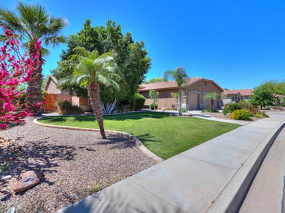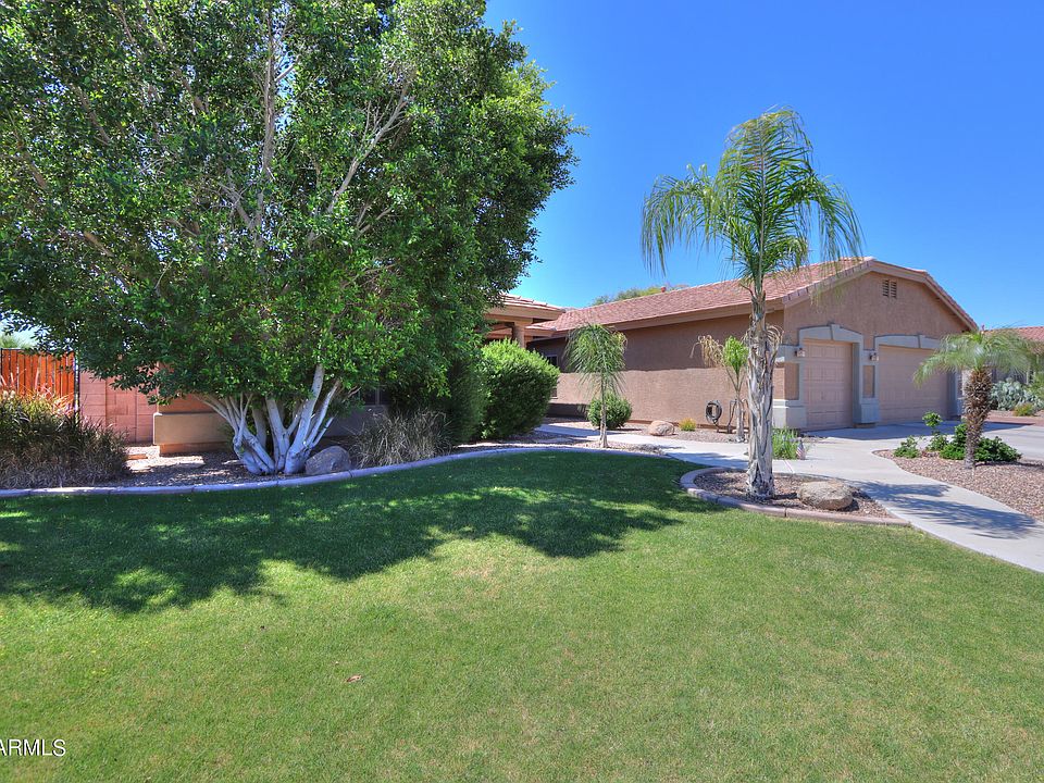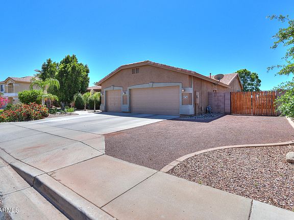 Welcome to your ideal home in the sought-after Dreaming Summit subdivision of Litchfield Park! This impeccably maintained residence spans 3,749 square feet on nearly half an acre. With five bedrooms, 3.5 baths, and a three-car garage, there's abundant space for family and guests. The expansive primary bedroom includes a seating area, while the fifth bedroom boasts an en suite bathroom, perfect for guests or as in-law quarters. A well-appointed den with built-ins offers an ideal space for a home office or study. The heart of the home is the spacious open kitchen with ample countertops, overlooking the family room with vaulted ceilings and a cozy fireplace, creating a warm atmosphere for gatherings. Step outside to your private oasis in the expansive backyard (continue to add'l remarks) featuring built-in raised planters, mature landscaping, fruit trees, and a fenced pool, ideal for enjoying the Arizona sunshine. An RV gate and extra-wide side yard with two sheds cater to all your storage needs. Located in a gated community, this home offers security and peace of mind, with proximity to shopping, dining, and entertainment options. Don't miss the chance to make this stunning property your own!