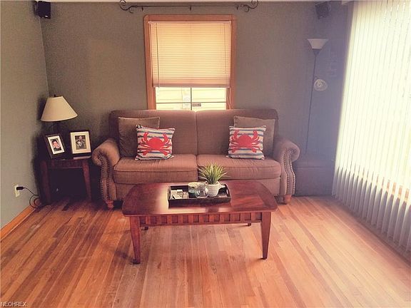 Fantastic floor plan in this lovely cape. Large kitchen with eat-in area and breakfast bar and chair rail, fridge, microwave and stove all stay! Living room features crown molding and hardwood floors. Hardwood floors can be found through most of this home. 2 nice size bedroom on the 1st floor and huge master bedroom n the second floor. Second floor bedroom features tons of storage with large storage closet, built-in shelving and several clothing closets. BONUS..finished lower level perfect for entertaining. Updates include: Furnace 05', A/C 16', glass block windows, roof shingles 11' (tear-off), siding 11', hot water heater 13'. This is a lovely home and well cared for!