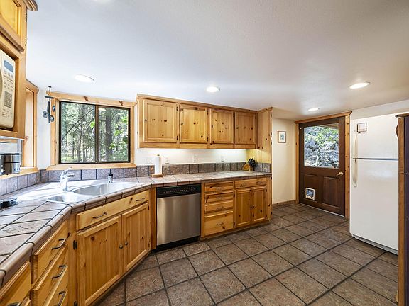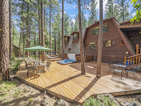 Your own gorgeous lodge at Black Butte Ranch! Enjoy private resort living situated on a cul de sac & surrounded by majestic ponderosa trees! This 3 level home has enough space for the whole family & friends. There are 6 bedrooms & 4 full bathrooms with an indoor dry sauna & outdoor hot tub situated on an oversized deck. The home has 3 fireplaces, wood burning & 1 is propane, gourmet kitchen, huge great room and an outstanding formal dining room that features a large pine table that seats 8 & floor to ceiling windows that bring the outside in. The lower level has a 3 car garage, extra storage & a finished heated shop & private office. Enjoy 3 balcony decks off the kitchen & bedrooms. The massive outside deck features a hammock, spa, swing & ample seating, perfect for those family reunions. Included in the sale are all furnishings, 2 kitchen refrigerators, 1 freezer, bedding & kitchenware. The side of the home adjoins common area.