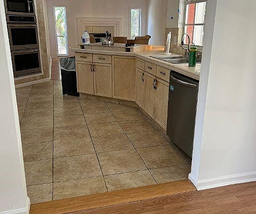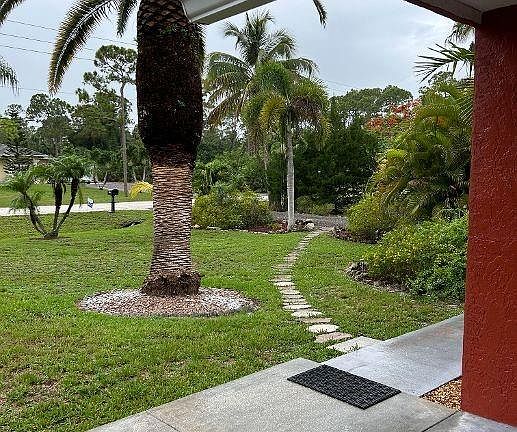 Interior of house painted in 2024. living area, den with woodburning fireplace vaulted ceilings ledges, high hats, ceramic tile, and wood flooring. Kitchen has stainless steel appliances , double wall oven and microwave. 2 large pantries , pass through windows to Lanai. 2 sets of French doors. Kitchen opens to formal dining and living room with Bay window. high hats and ledges. Property has fenced lap pool and patio off screened Lanai, Large driveway with room for RV, Boat and multiple vehicles. Property has mature land scaping. Recent renovations 2024-pool filter, skimmer, ceiling fans, driveway. 2023-Roof, Air conditioning, Washer/Dryer, Garage door opener. 2022- hot water heater, 2 counter height bathroom vanities,,well water system new cabana bath door, home has accordian shutters