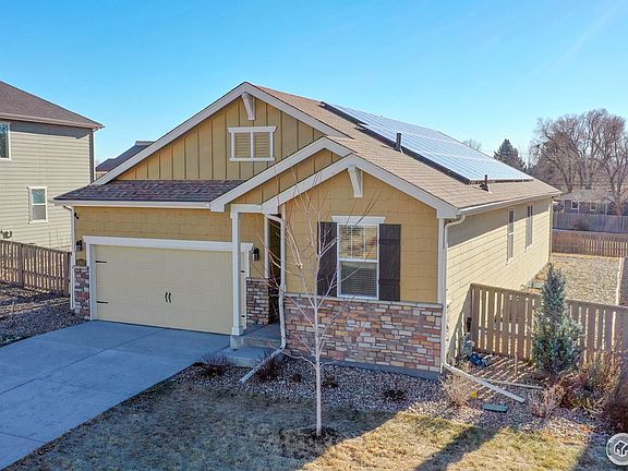 Beautiful 3 Bed / 2 Bath Ranch Style Home in the desirable Yeager Farms community. Enjoy the open floor plan! Living room w. Gas Fireplace. Kitchen features granite tops, kitchen island and gas range. Master Bedroom w. 5 Piece Master Bath and Walk-In Closet. Large lot backing to open space instead of an adjacent house. Stunning views of Longs Peak from the front yard! Great location close to shopping and entertainment. Easy access to Boulder, Estes Park, and Loveland. Solar is owned from Sopris Solar.