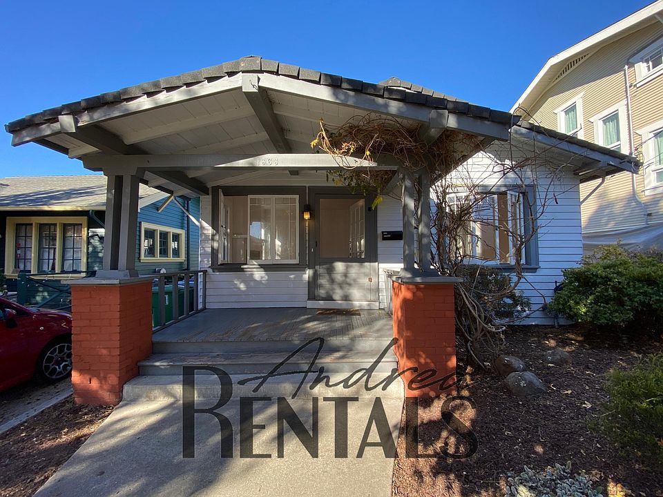 :: Given the current state of our county and world, AndreaRentals will first offer virtual tours of all properties by request. In person showings are reserved for those who have viewed the virtual tour and completed our application process. Our goal is to use technology to its fullest and do right by our clients and by the public at large. Stay safe out there. :: Pretty 1920s 2 bed+/1 bath house with modern upgrades while retaining its vintage charm, located on a quiet street in the residential central Berkeley. Includes a bonus sunroom, perfect for a home office! Wide front stairs lead to a front porch with enough room for a swing or rocker - perfect for watching the world go by! The front door (with classic screen door) opens to a bright living area with fireplace, gorgeous beamed ceilings, and large windows. The living room adjoins a formal dining room with beautiful tall windows and original hardwood floors throughout. Sweet eat-in kitchen that you can actually cook a big meal in! It has all the modern convenience of a gas stove, full size fridge, plenty of counter and cabinet space, but keeps its vintage charm with large built-in benches and table. Off the kitchen is the laundry room with energy efficient washer and dryer. The attached sunroom is perfect as an office and has a large skylight and looks into the backyard. Rear raised deck, great for BBQs or coffee with your Sunday paper. Fully enclosed backyard has raised planter beds with plenty of room for fun. Two good-sized bedrooms with great light and decent sized closets. Upgraded bathroom has great storage and counter space with shower over tub. One off-street parking spot available with plenty of street parking around. Great location: pretty, tree-lined street, walking distance to numerous restaurants and three blocks to North Berkeley BART station. Easy walk or bike ride to anywhere in Berkeley. Available December 15. Tenant responsible for all utilities. A well behaved cat or dog considered with an additional deposit. Showing by appointment only - Virtual Tour Now! Stephanie DeMott BRE: #02007384 AndreaRentals: A Rental Concierge for Bay Area Owners and Renters Tenant responsible for all utilities.