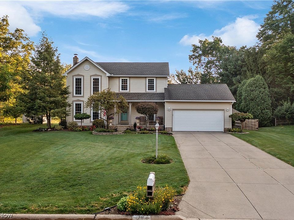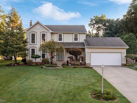 Welcome to this stunning colonial style home located in desirable Meadow Wood Estates in the heart of Green. This inviting abode has been updated and lovingly maintained. The oversized great room boasts a fireplace and is bright and airy. The eat-in kitchen has an open floor plan to the dinette and offers tons of cabinet and counter space. The granite countertops and stainless steel appliances make this room even more stunning. Enjoy your morning coffee in the amazing sunroom which overlooks the lovely backyard. There is also a formal dining room on the main level perfect for holiday events. There are three nicely sized bedrooms, all situated on the second level, and two and a half baths. The owner's suite has a private bathroom that has been recently renovated and has double bowl sinks in addition to a walk in closet. The lower level has two finished rooms which adds additional living space to this awesome home. There is also a back deck for summer parties. The windows, fur