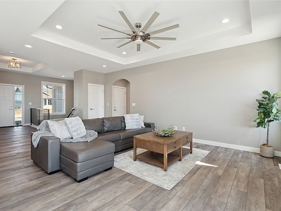 This beautiful zero-entry (no stairs at main entry doors) new construction home is ready for you. Beautiful 5 bed, 3 bath, spacious kitchen with white cabinets, quartz counters, breakfast bar, dining area. Primary suite with walk-in closet. Living room offers volume trey ceiling and gas fireplace. Additional amenities: white painted trim, quartz counter tops throughout, maintenance free deck with oversized patio area. Appliance package with refrigerator included. Confirm school districts. Taxes not fully assessed.